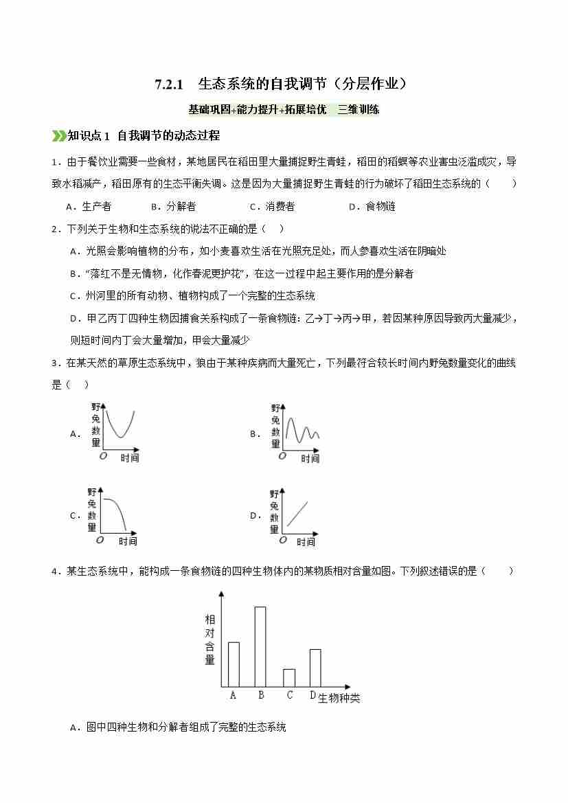 7.2.1 生态系统的自我调节(分层作业)(原卷版)
