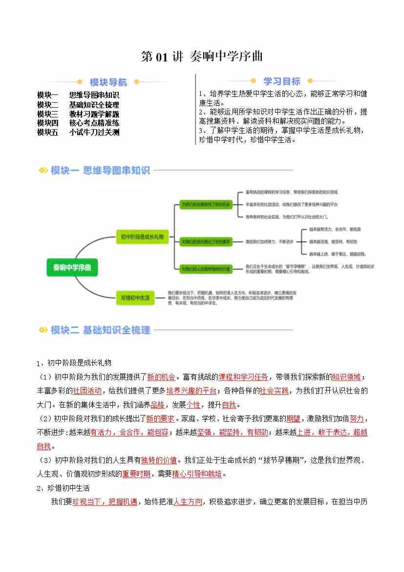 第01讲 奏响中学序曲-【暑假自学课】2024年新七年级道德与法治暑假提升精品讲义(统编版)