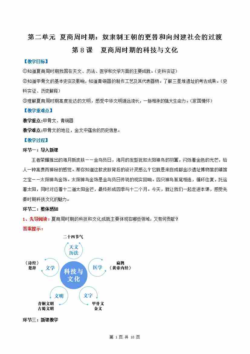 第8课 夏商周时期的科技与文化(教学设计)