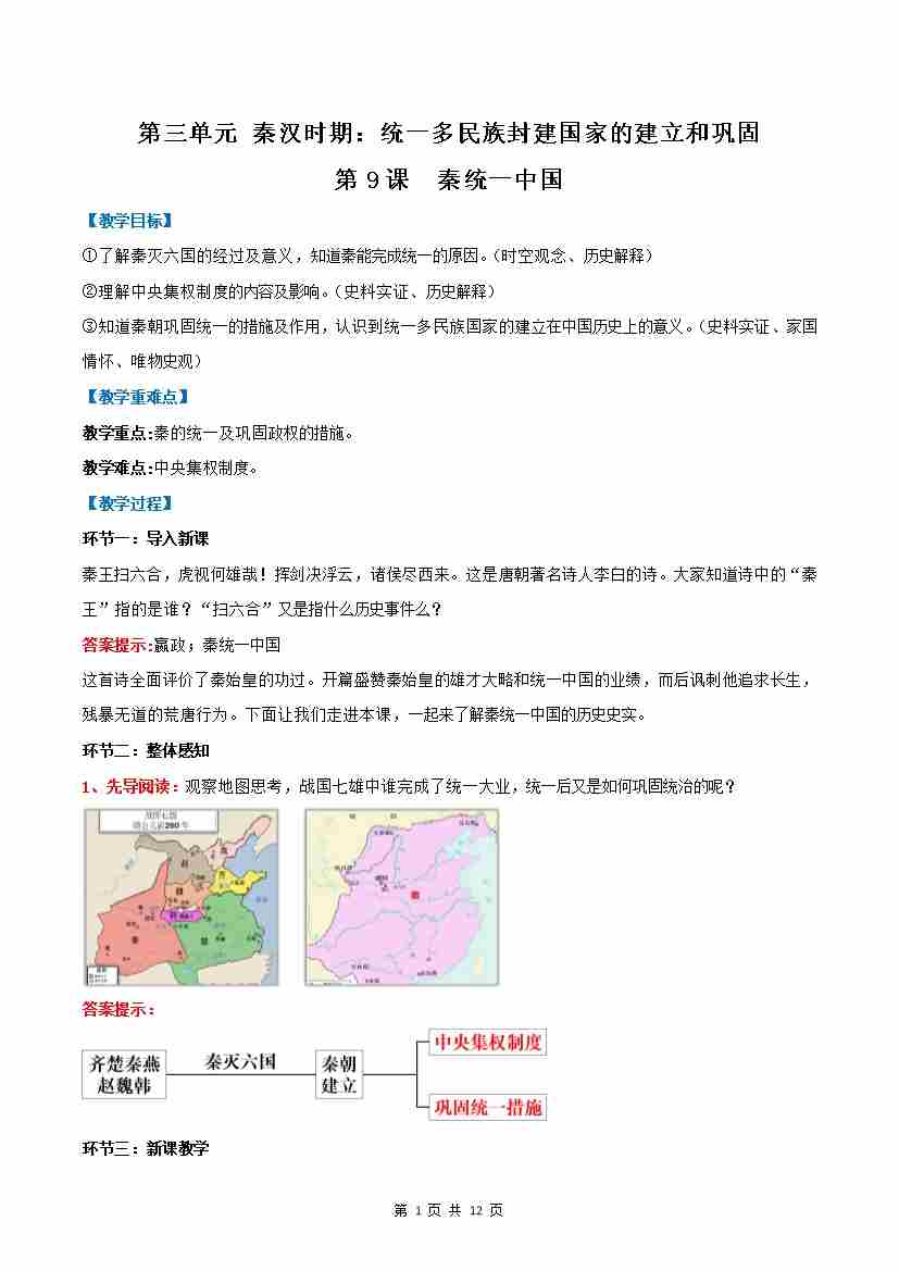 第9课 秦统一中国(教学设计)