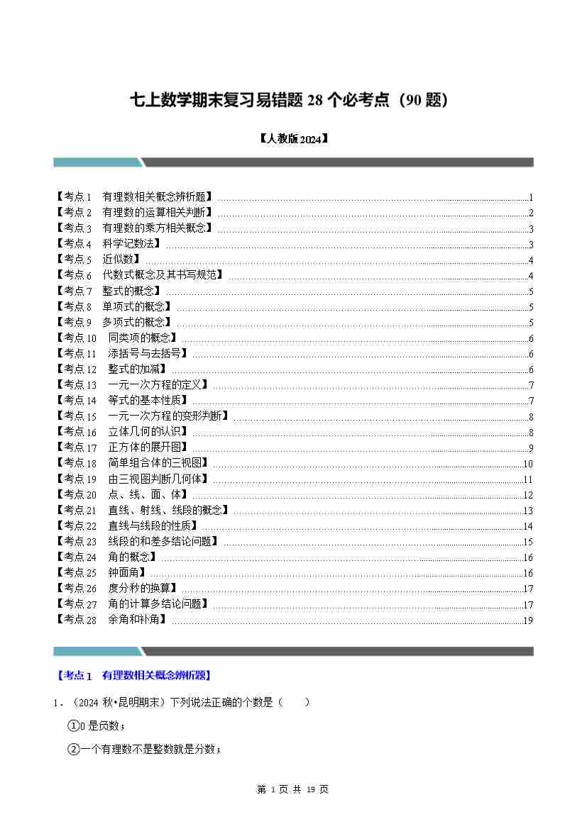 期末复习易错题28个必考点(90题)(解析版)