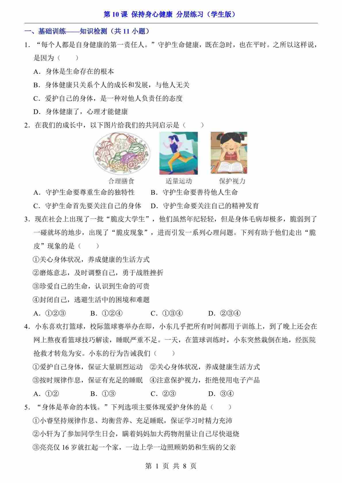 第10课 保持身心健康(分层练习)
