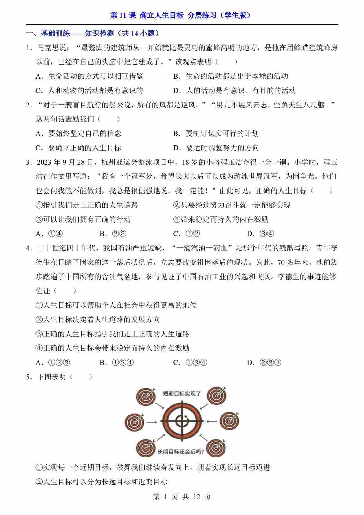 第11课 确立人生目标(分层练习)