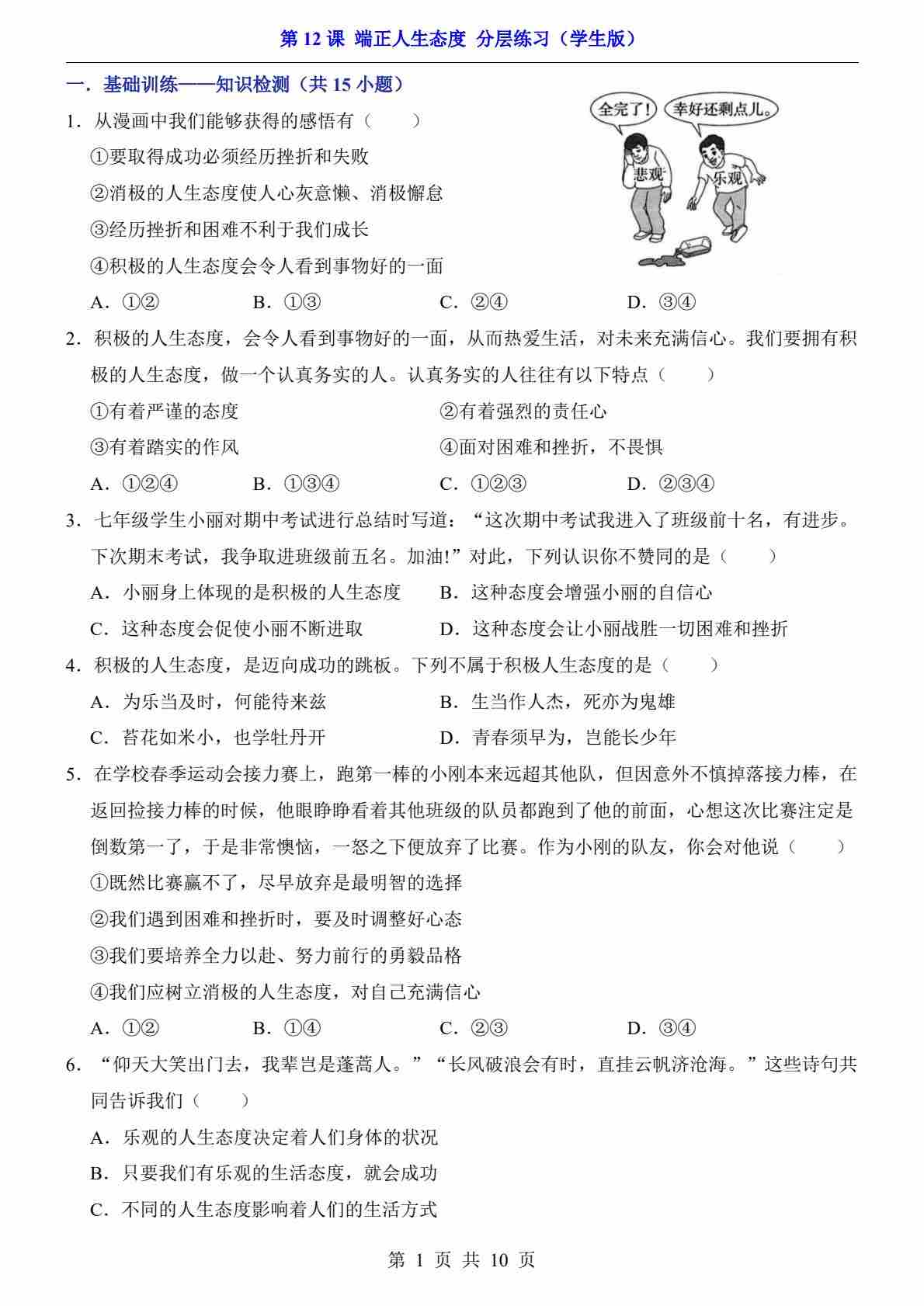 第12课 端正人生态度(分层练习)