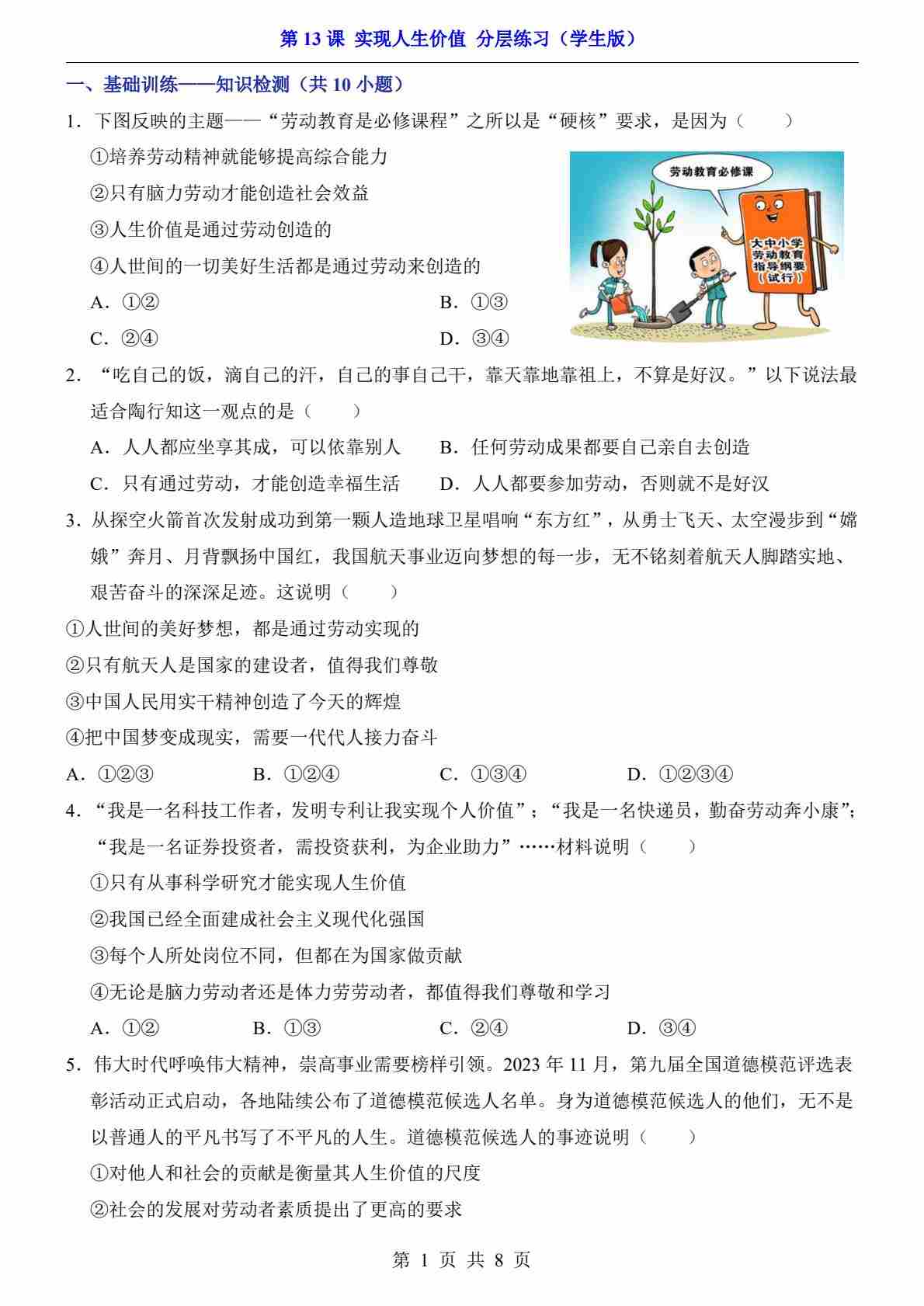 第13课 实现人生价值(分层练习)