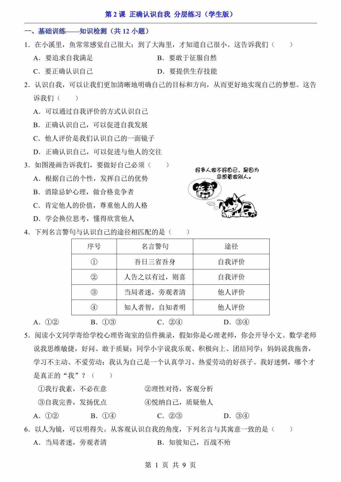 第2课 正确认识自我(分层练习)