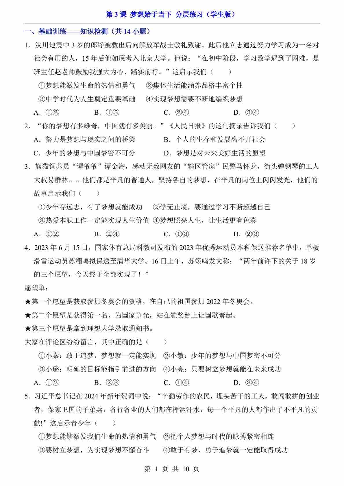 第3课 梦想始于当下(分层练习)