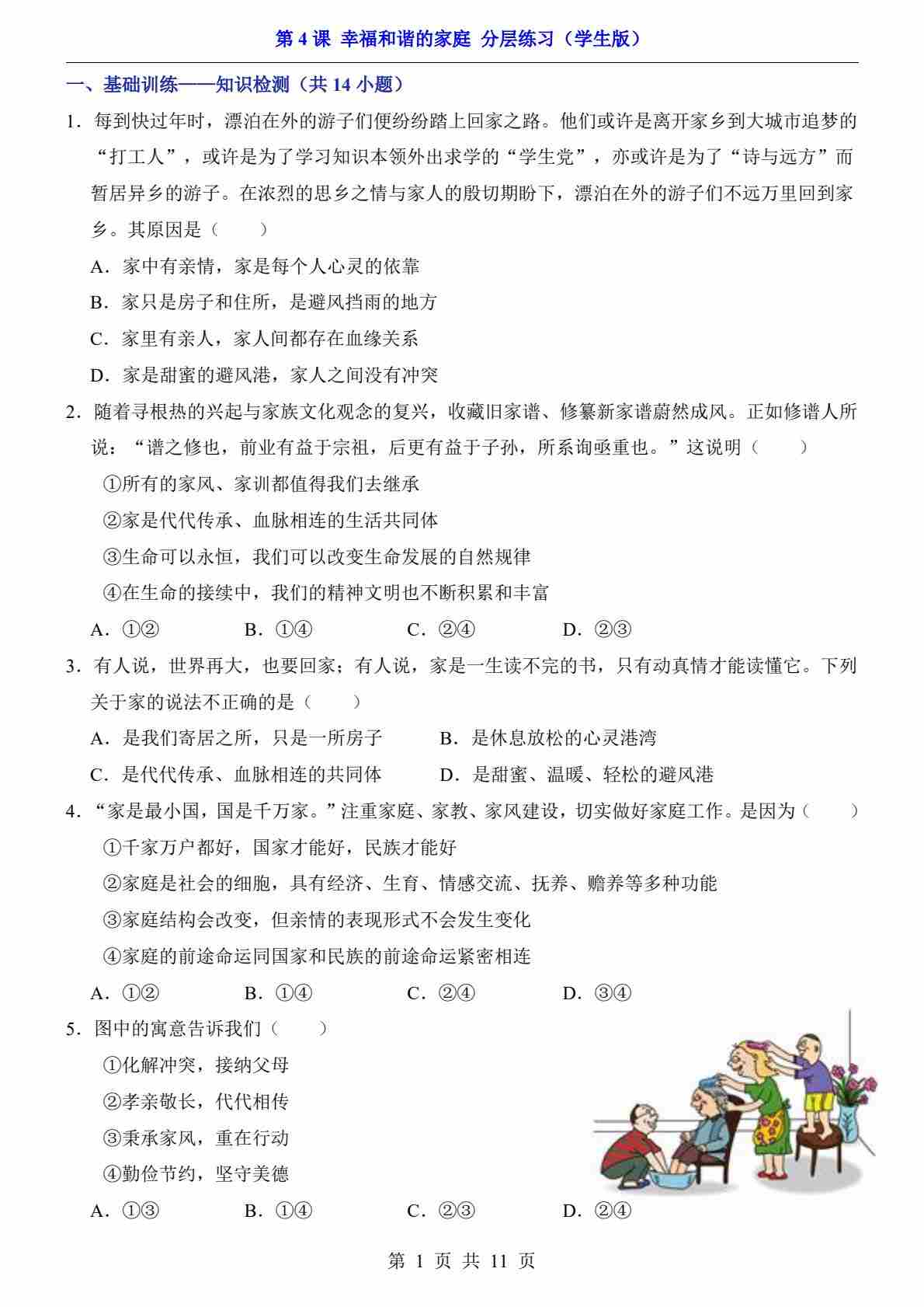 第4课 幸福和谐的家庭(分层练习)