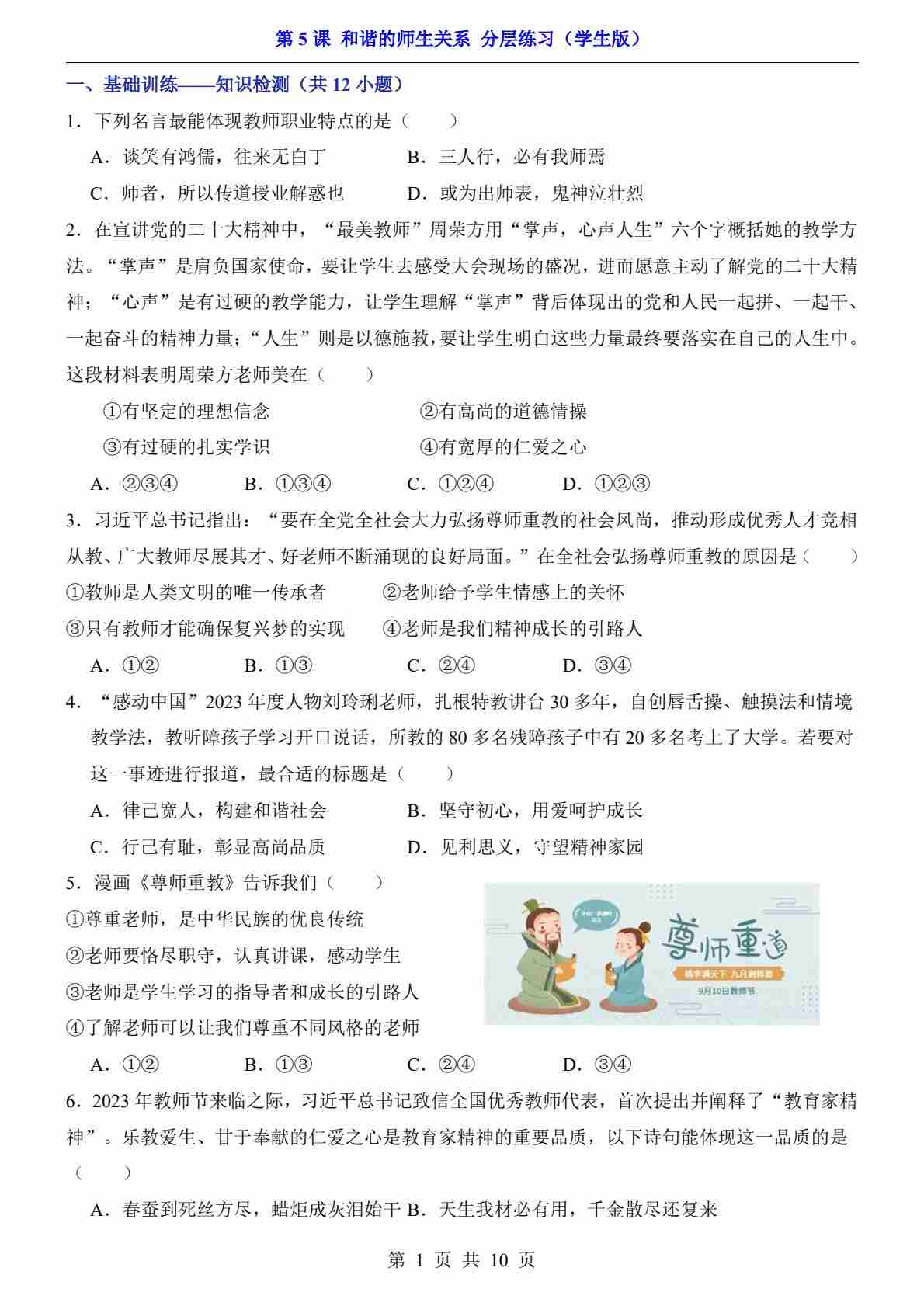 第5课 和谐的师生关系(分层练习)