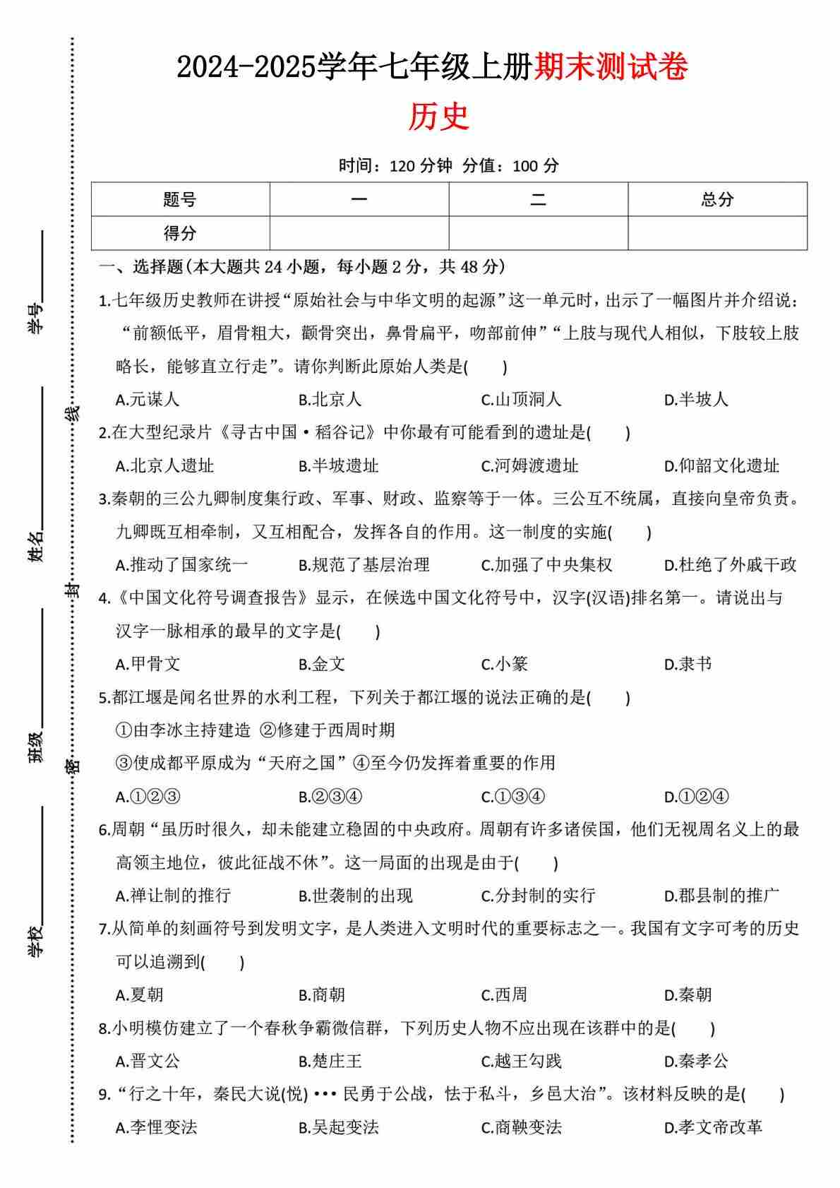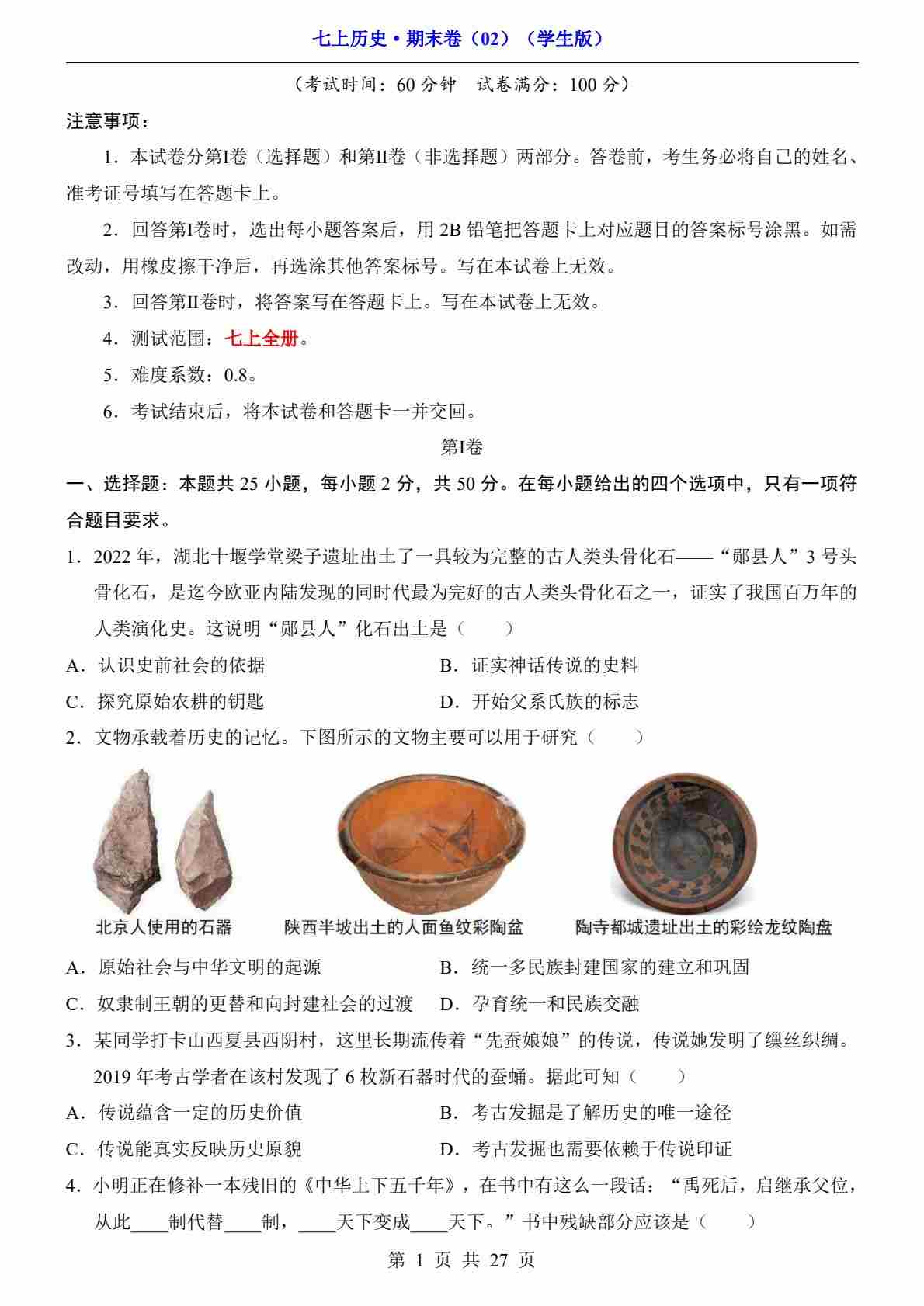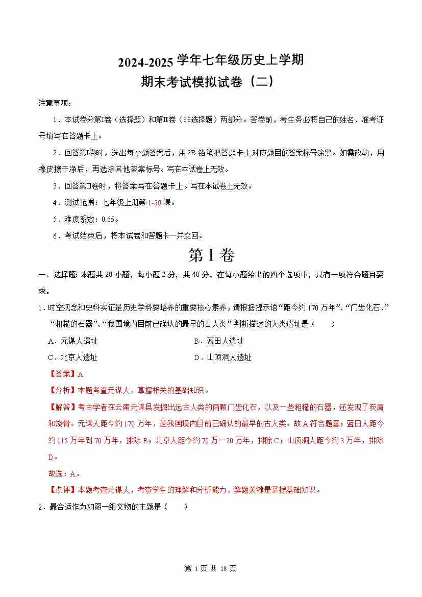 7上历史期末卷02【7上全册】