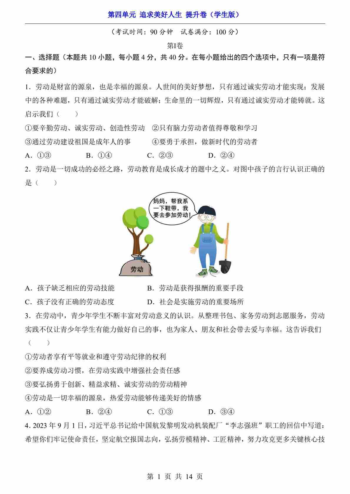 第4单元 追求美好人生(提升卷)