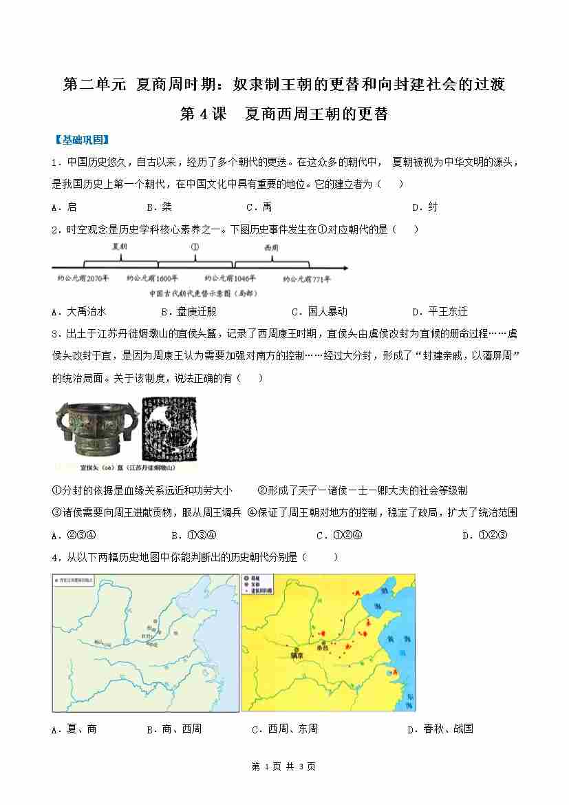 第4课 夏商西周王朝的更替(分层作业)(原卷版)