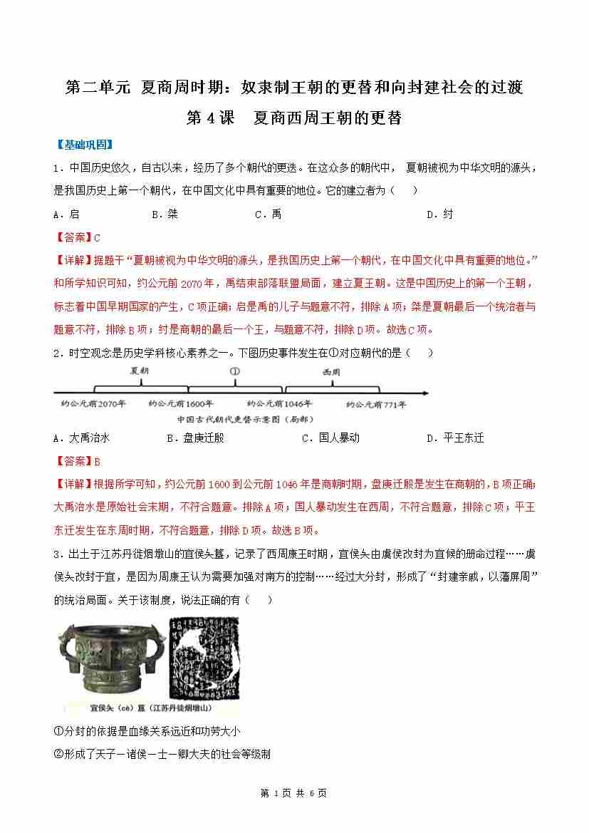 第4课 夏商西周王朝的更替(分层作业)(解析版)