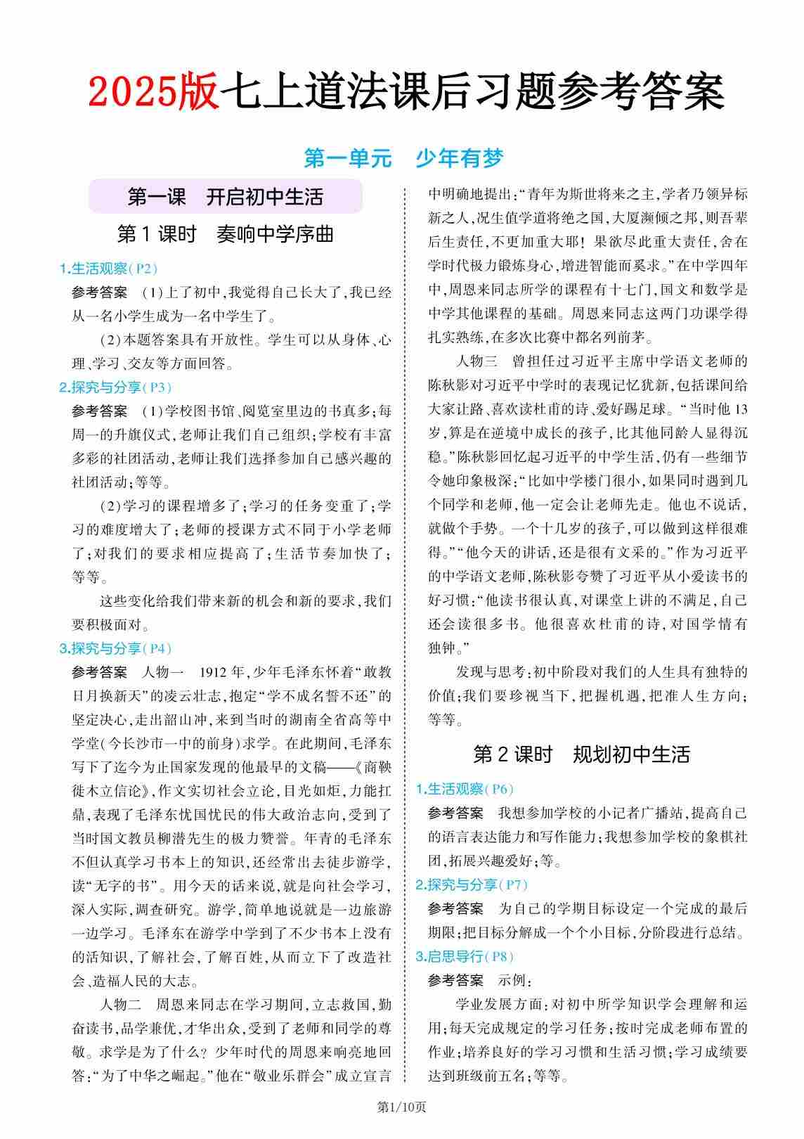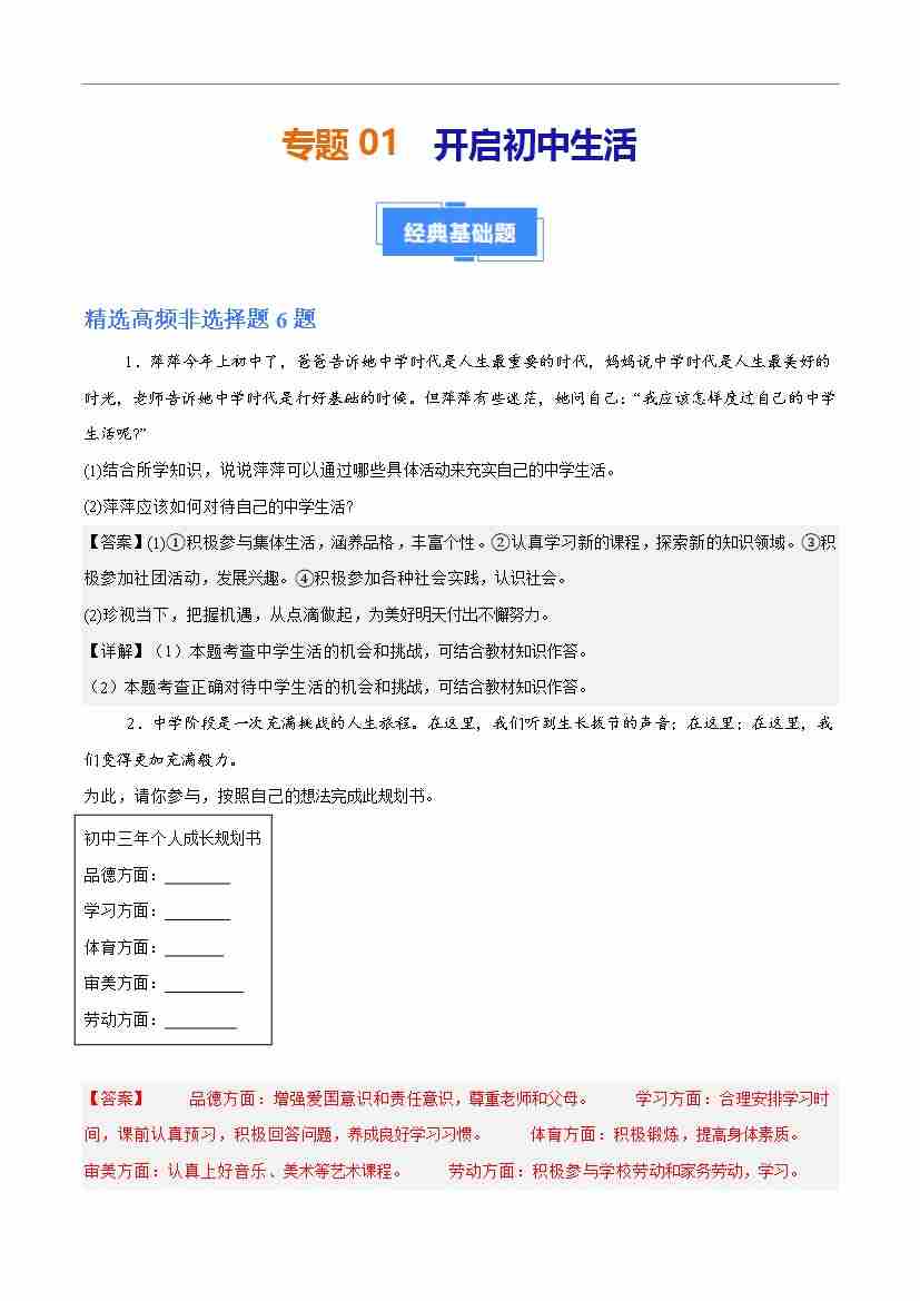 专题01 开启初中生活(高频非选题13题)(解析版)