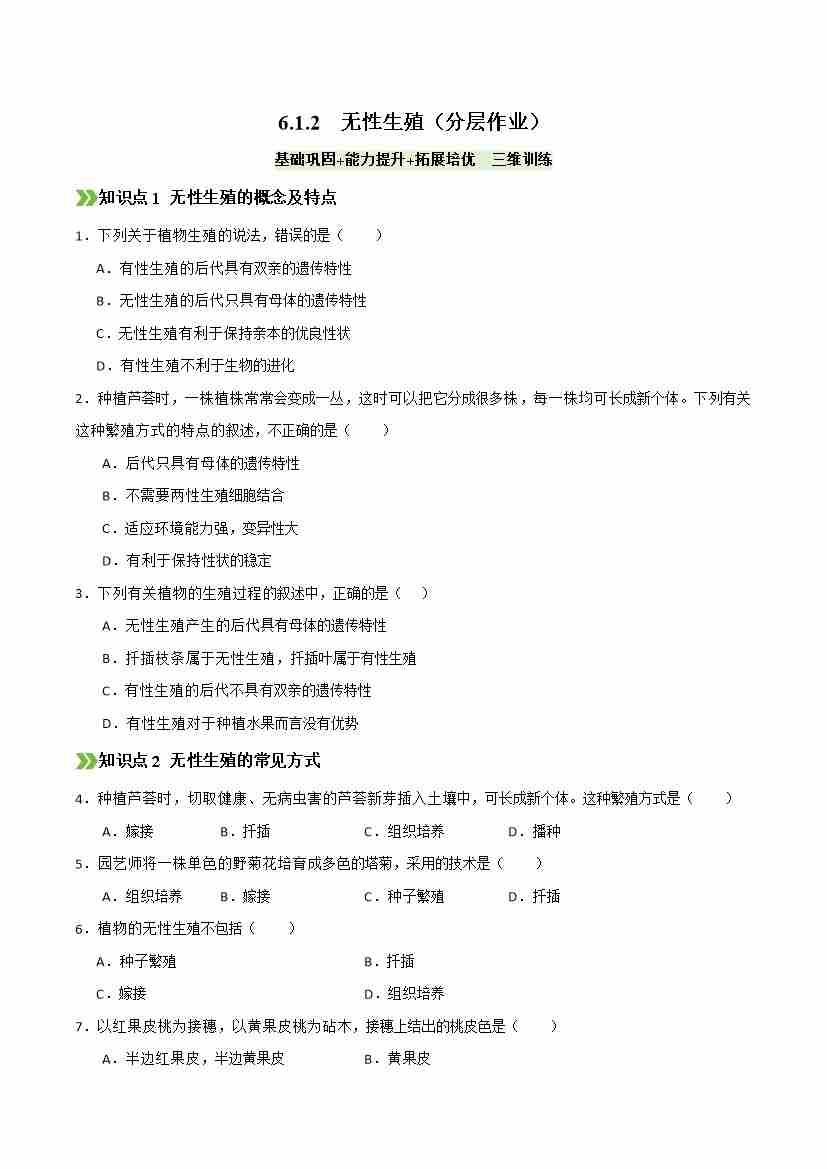 18.1 选择健康的生活方式(分层作业)(原卷版)