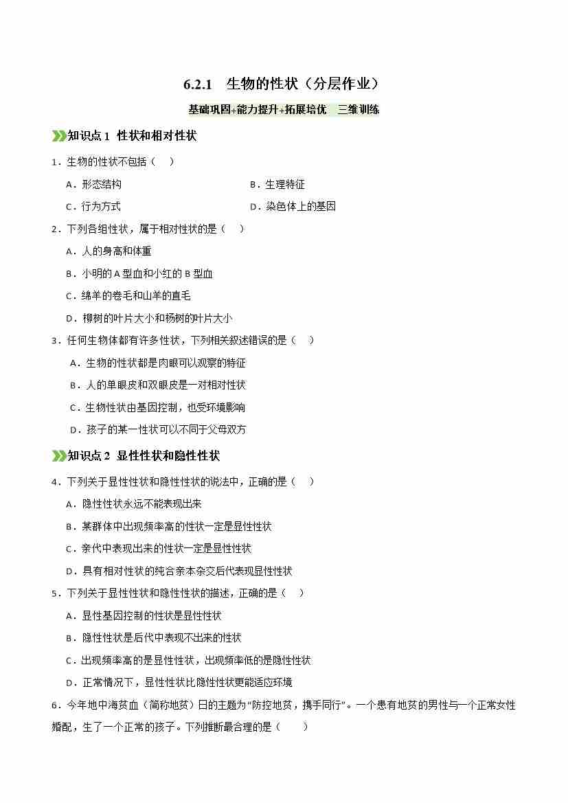 6.2.2 遗传物质——DNA(分层作业)(原卷版)