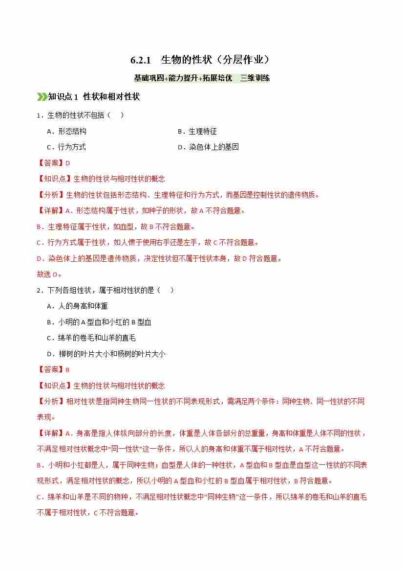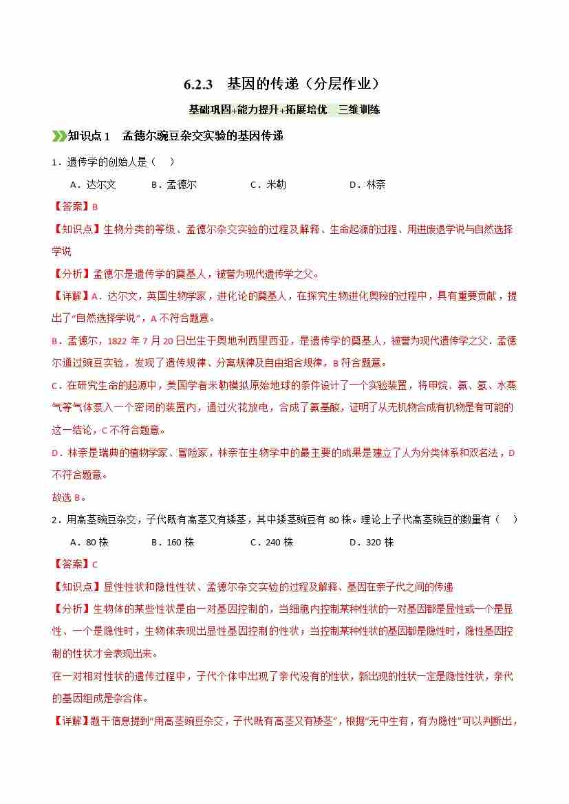 6.2.2 遗传物质——DNA(分层作业)(解析版)