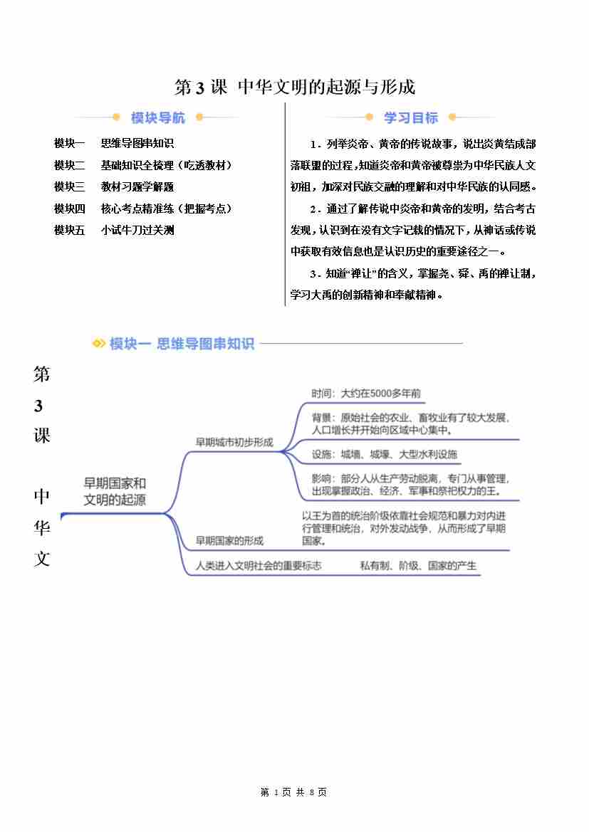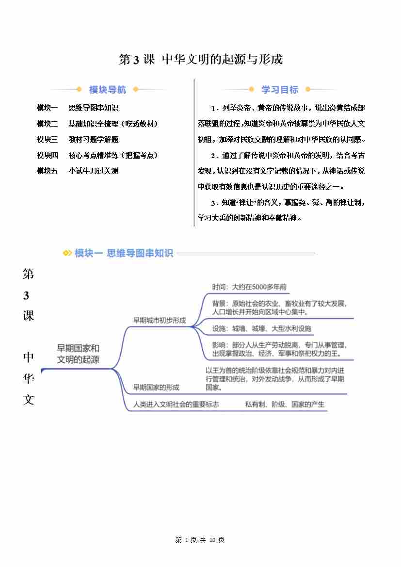 第3课 中华文明的起源与形成(原卷版)