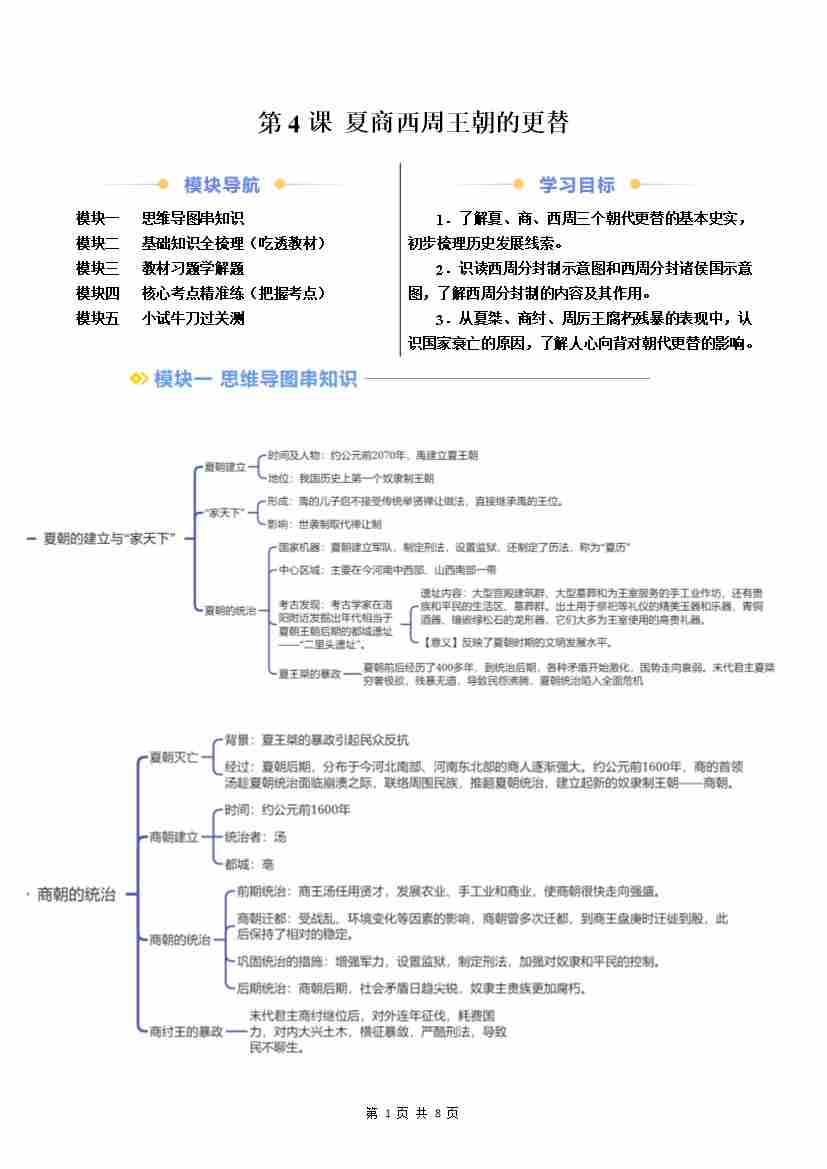 第4课 夏商西周王朝的更替(原卷版)