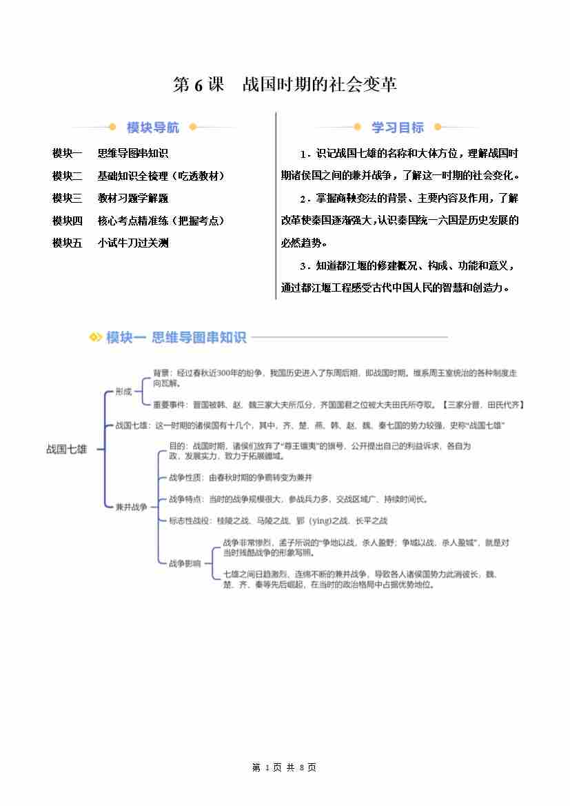 第6课 战国时期的社会变革(原卷版)