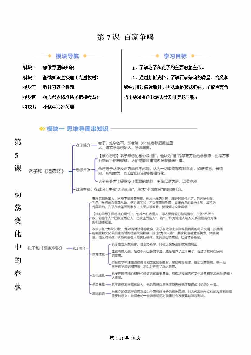 第7课 百家争鸣(原卷版)
