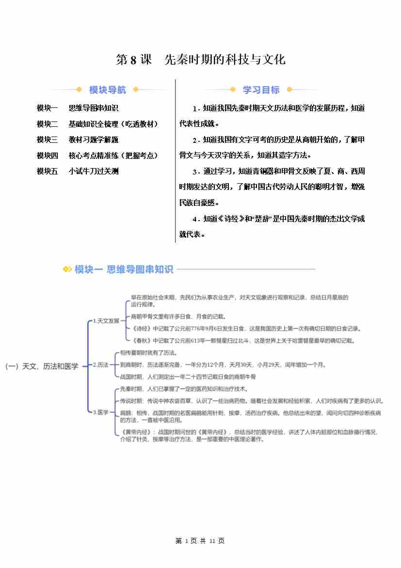 第8课 先秦时期的科技与文化(原卷版)