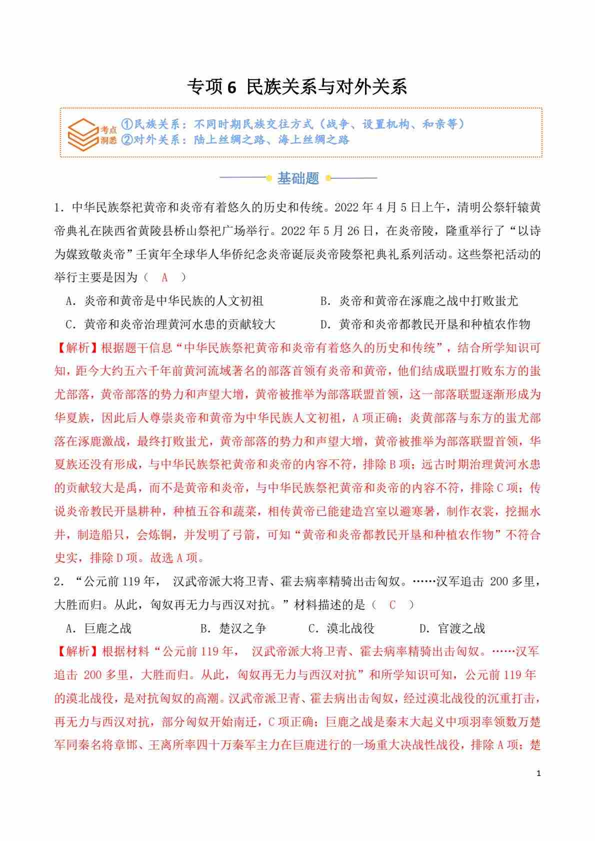 专项6 民族关系与对外关系(解析版)
