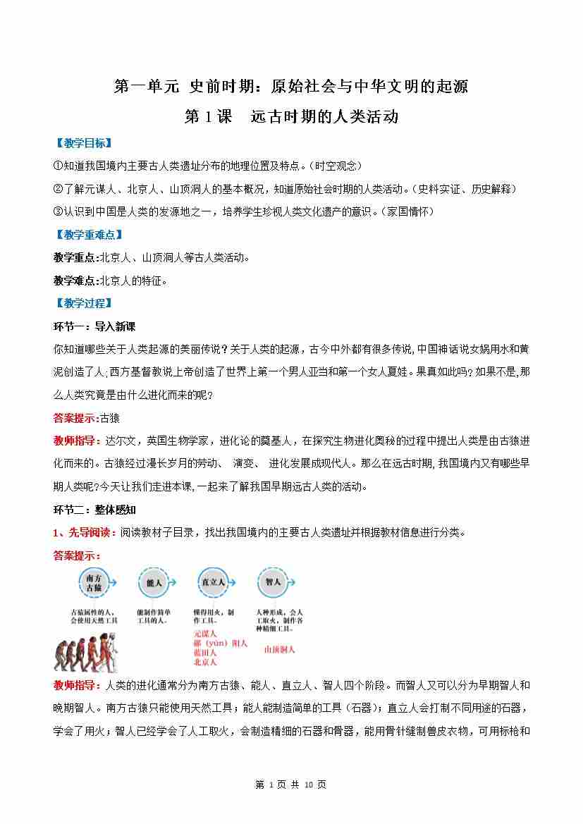 第1课 远古时期的人类活动(教学设计)