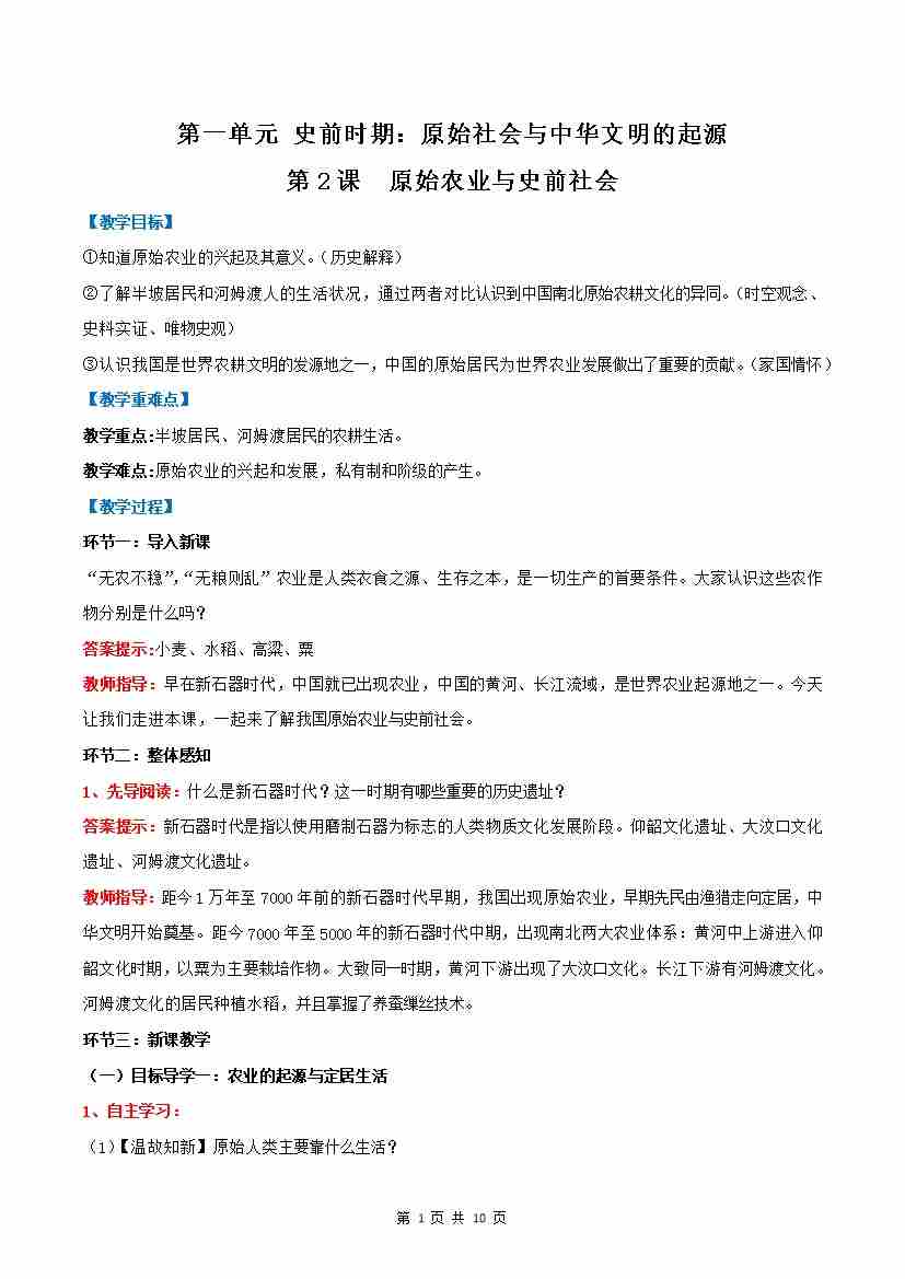 第2课 原始农业与史前社会(教学设计)