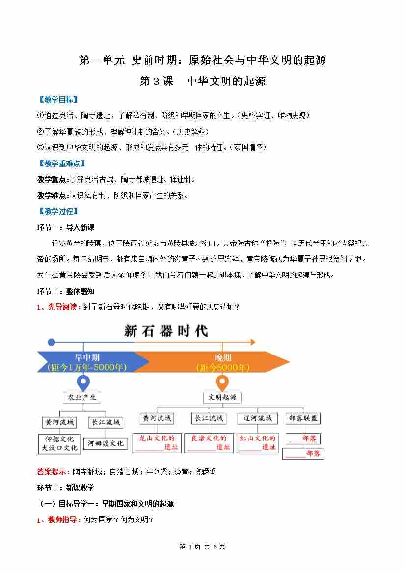 第3课 中华文明的起源(教学设计)