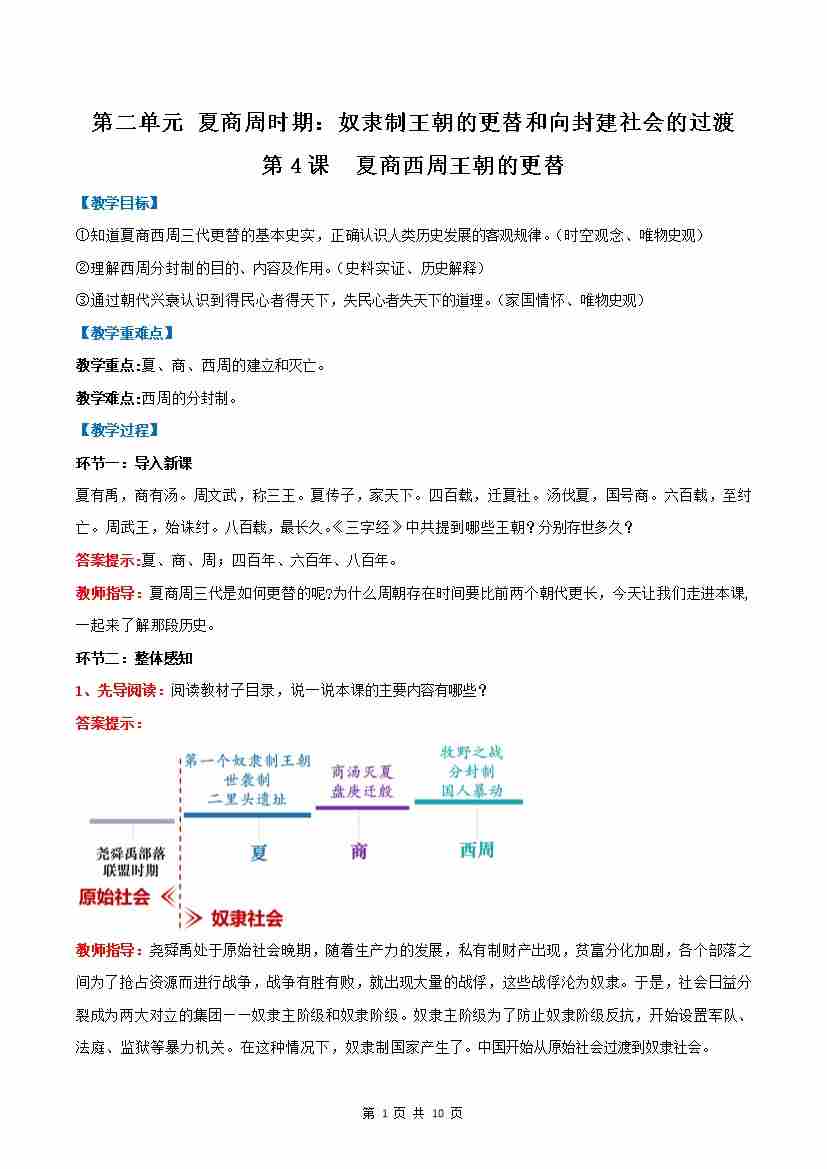 第4课 夏商西周王朝的更替(教学设计)