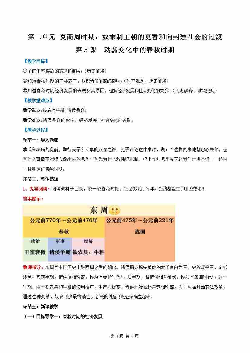 第5课 动荡变化中的春秋时期(教学设计)