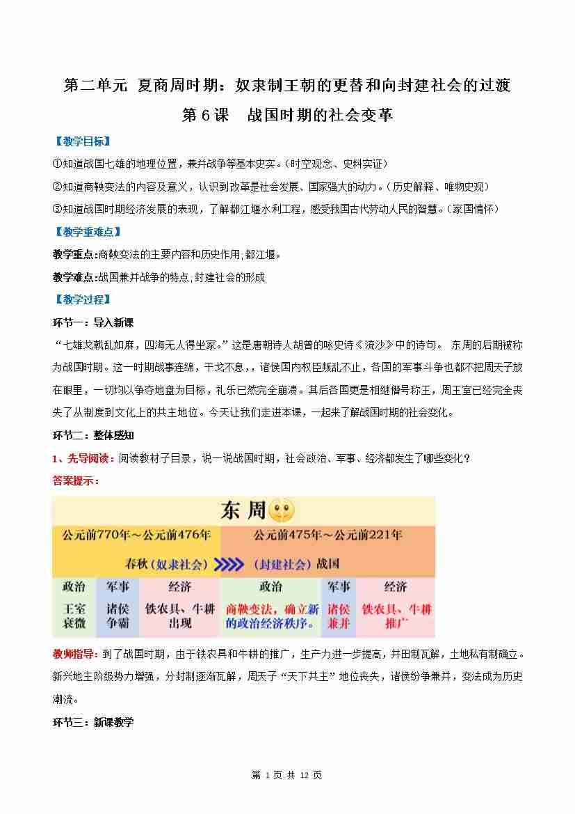 第6课 战国时期的社会变革(教学设计)