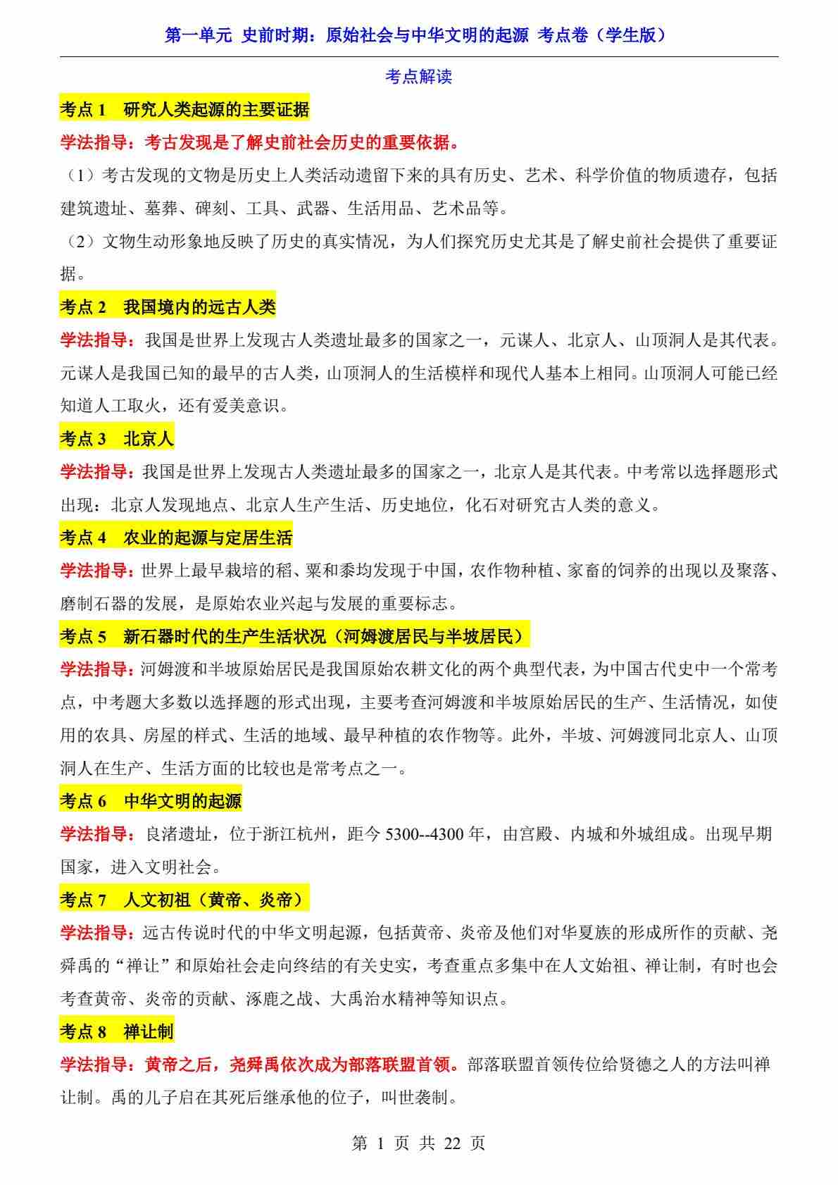 第1单元 史前时期(考点卷)