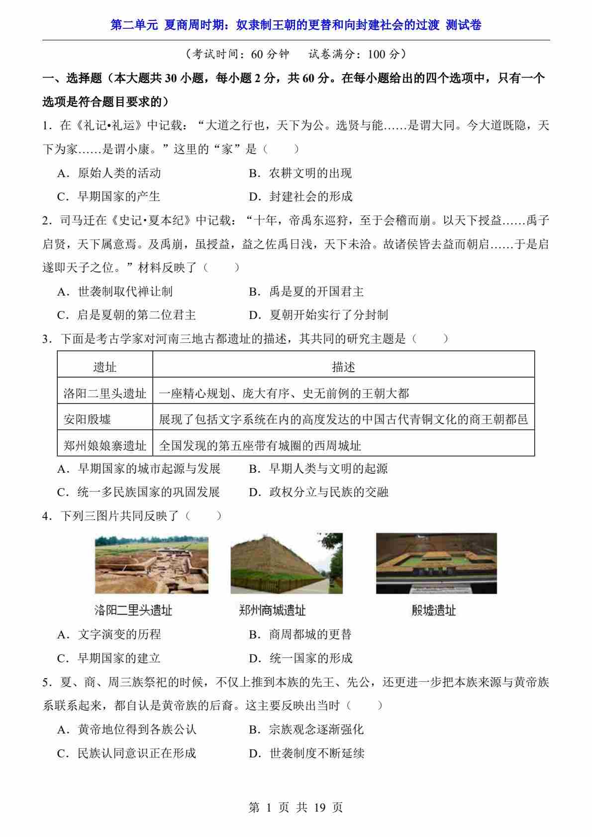 第2单元 夏商周时期(测试卷)