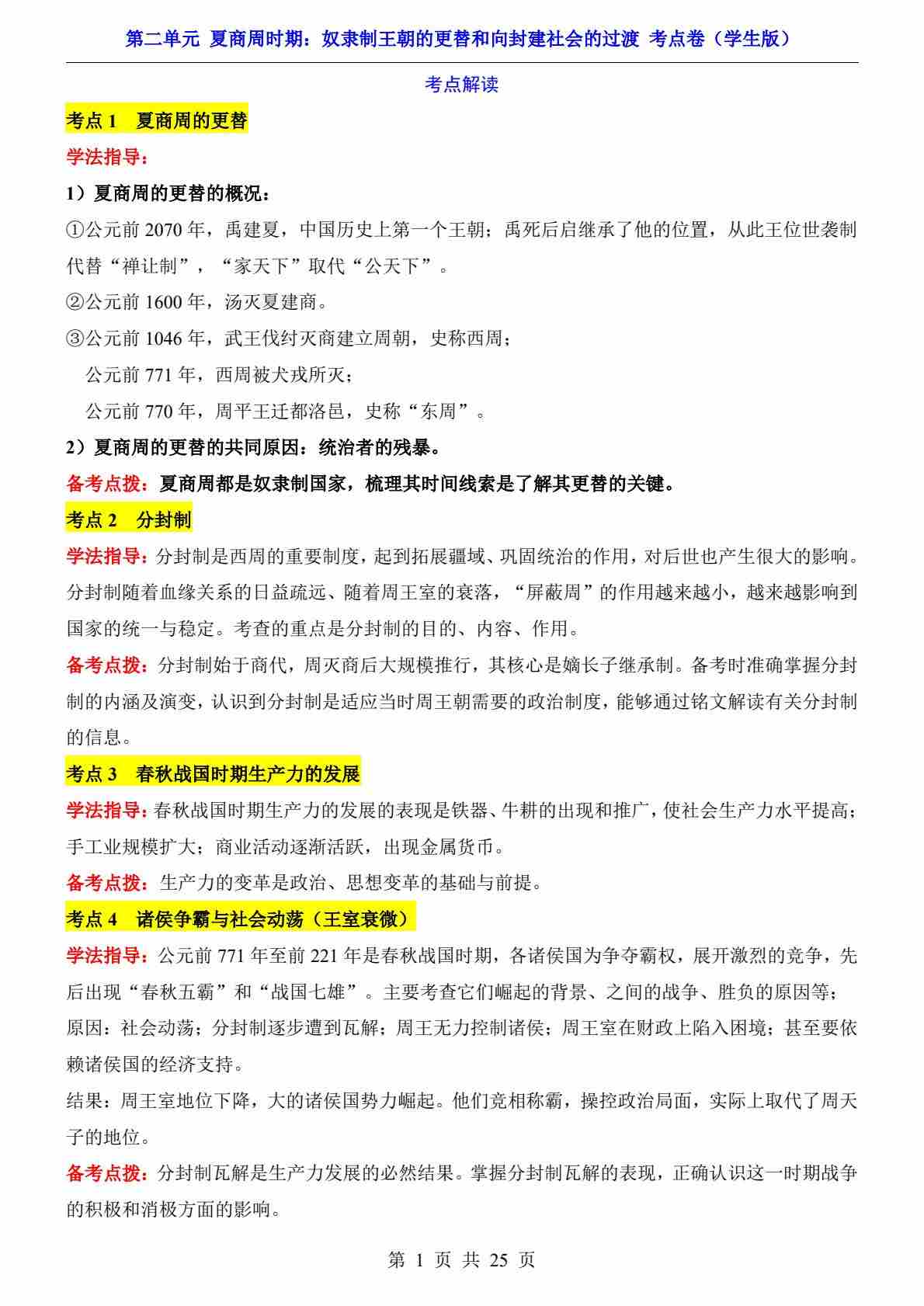 第2单元 夏商周时期(考点卷)