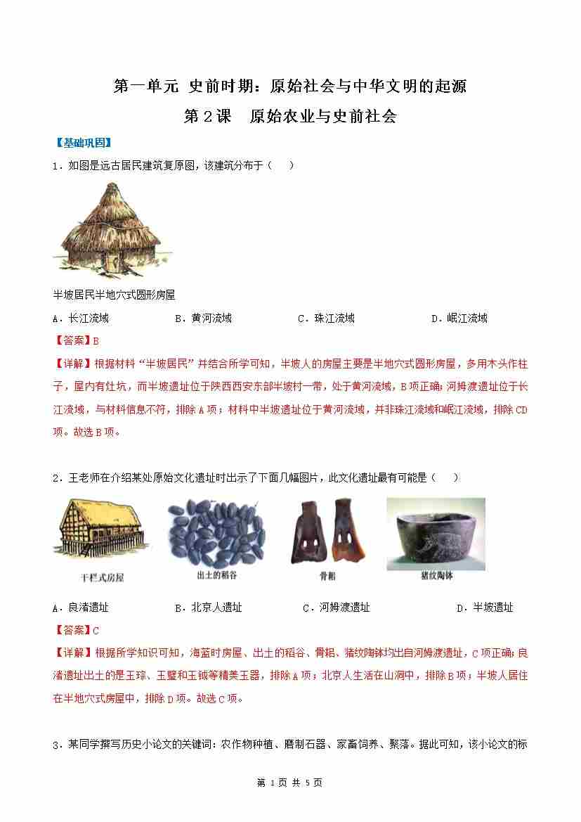 第2课 原始农业与史前社会(分层作业)(解析版)