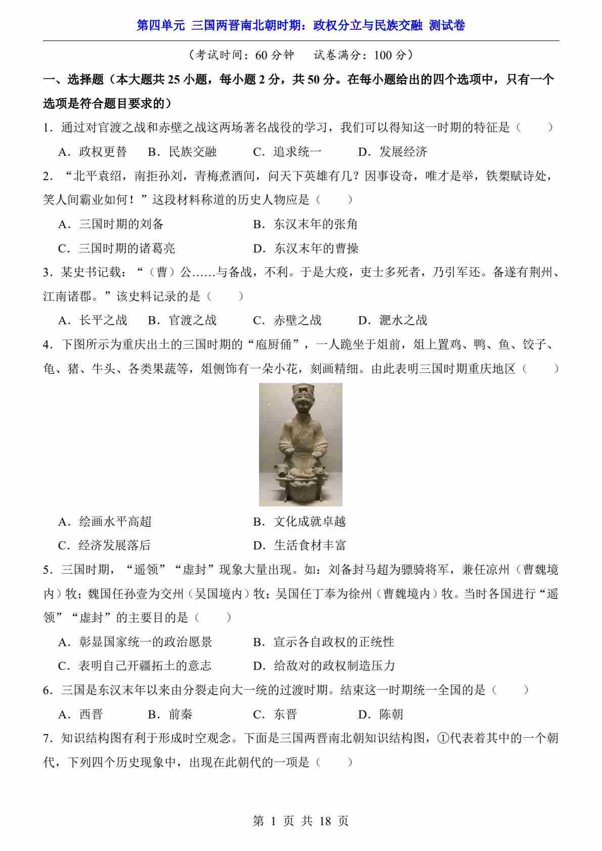 第4单元 三国两晋南北朝时期(测试卷)
