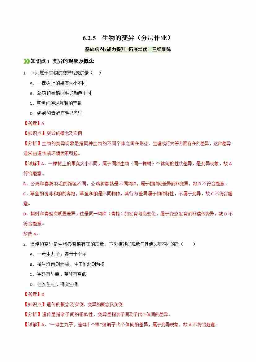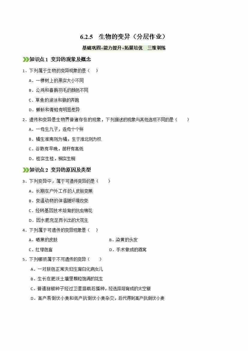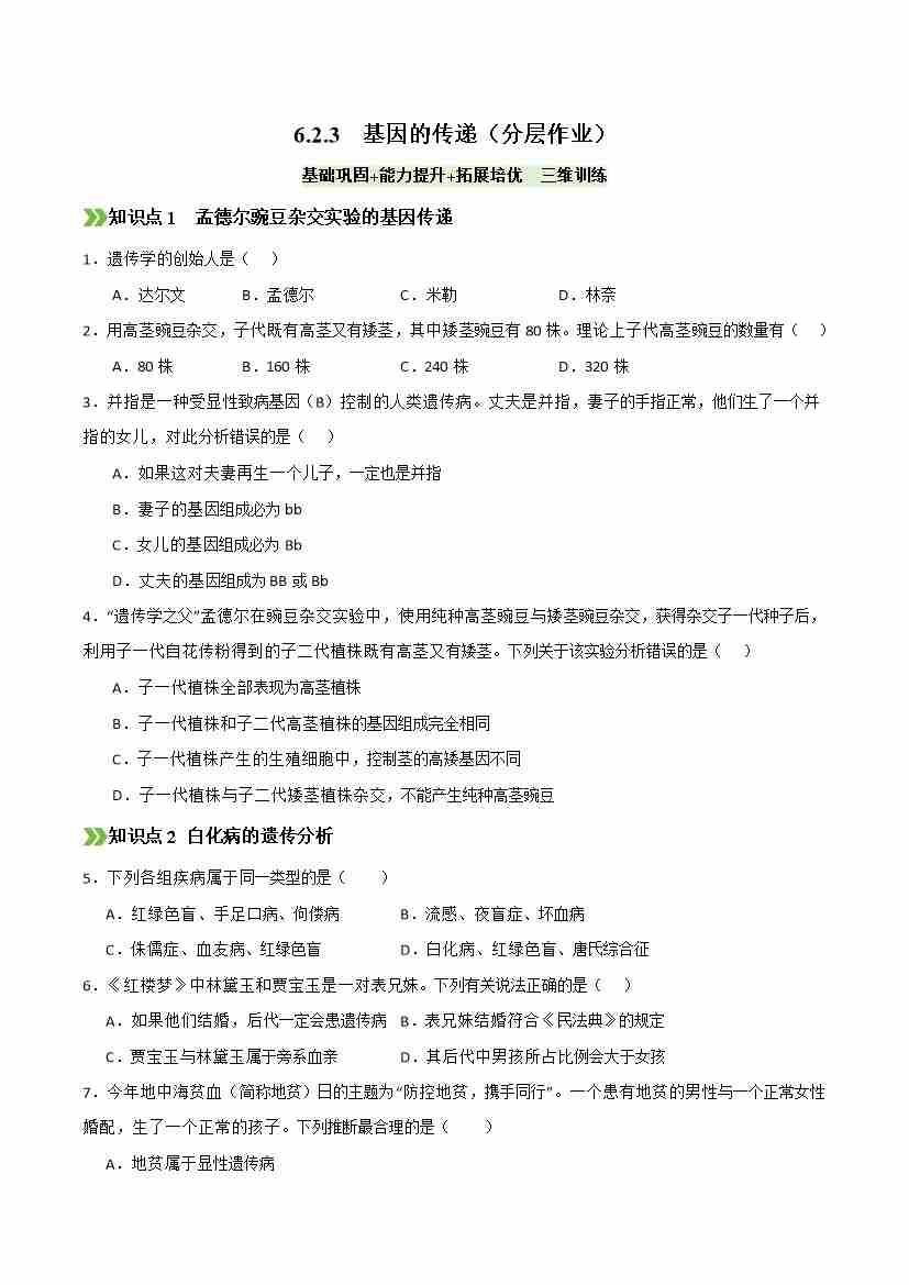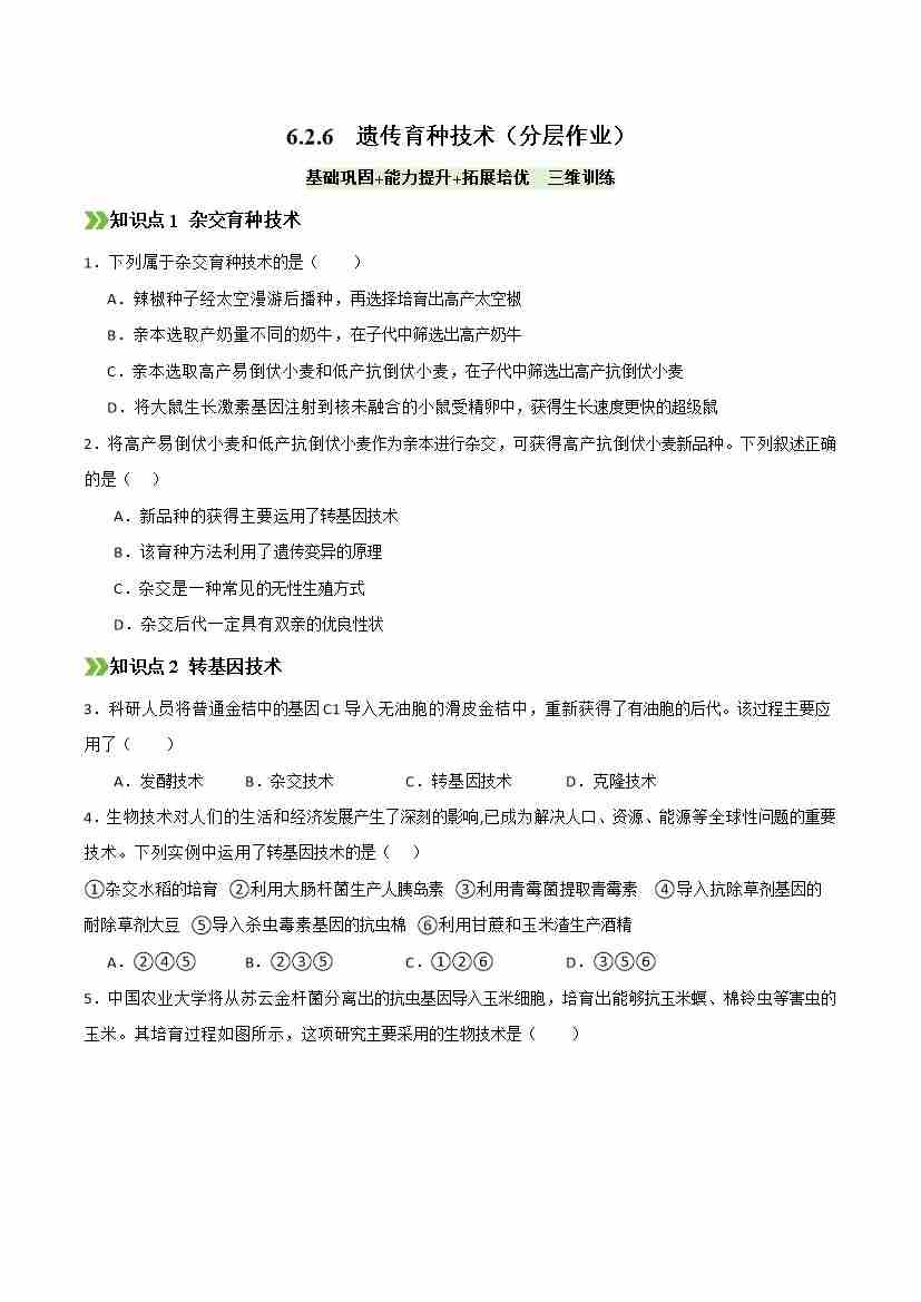 6.2.6 遗传育种技术(分层作业)(原卷版)
