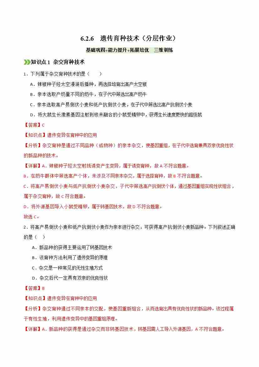 6.2.6 遗传育种技术(分层作业)(解析版)