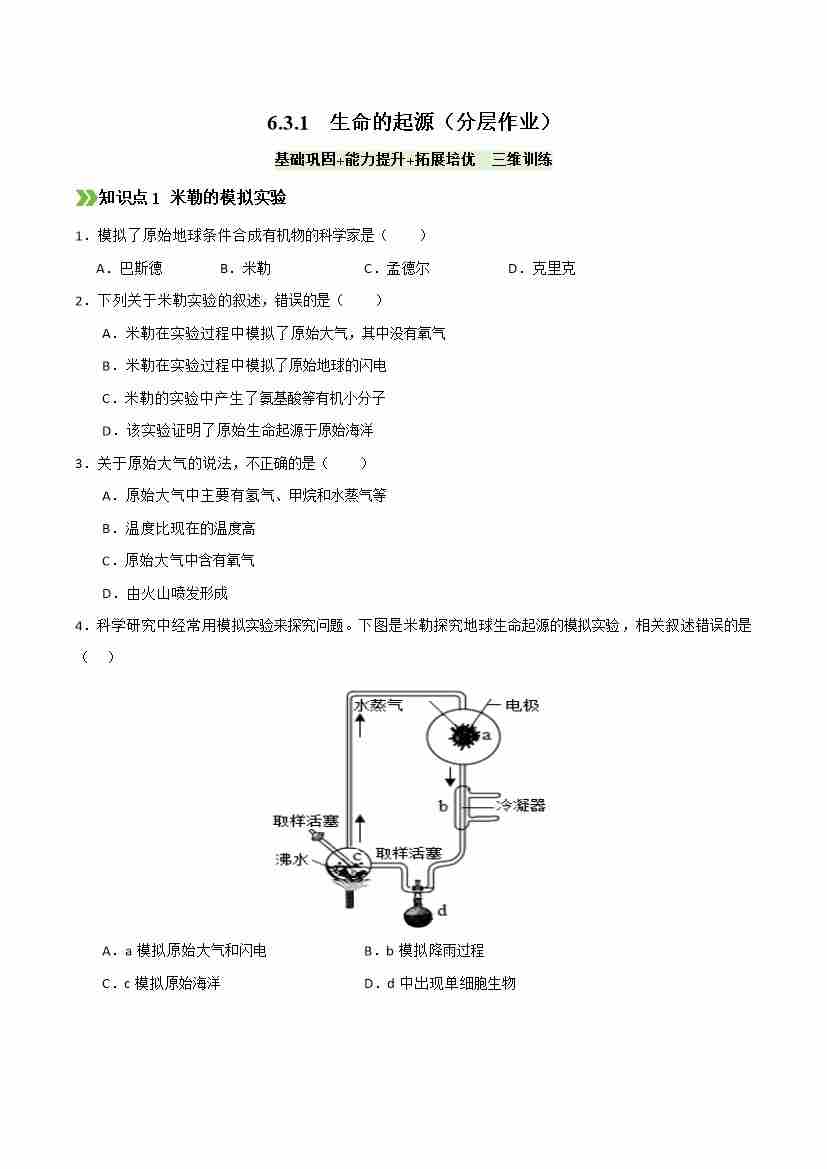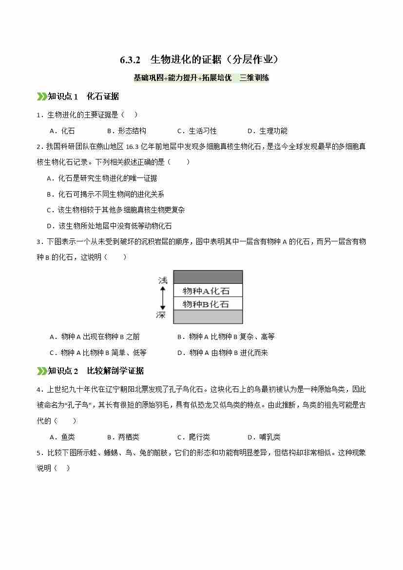6.3.2 生物进化的证据(分层作业)(原卷版)