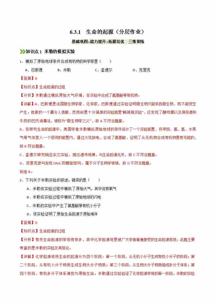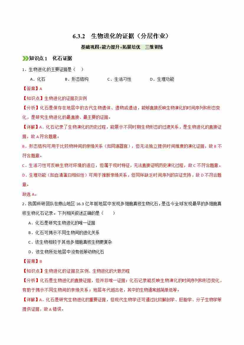 6.3.2 生物进化的证据(分层作业)(解析版)