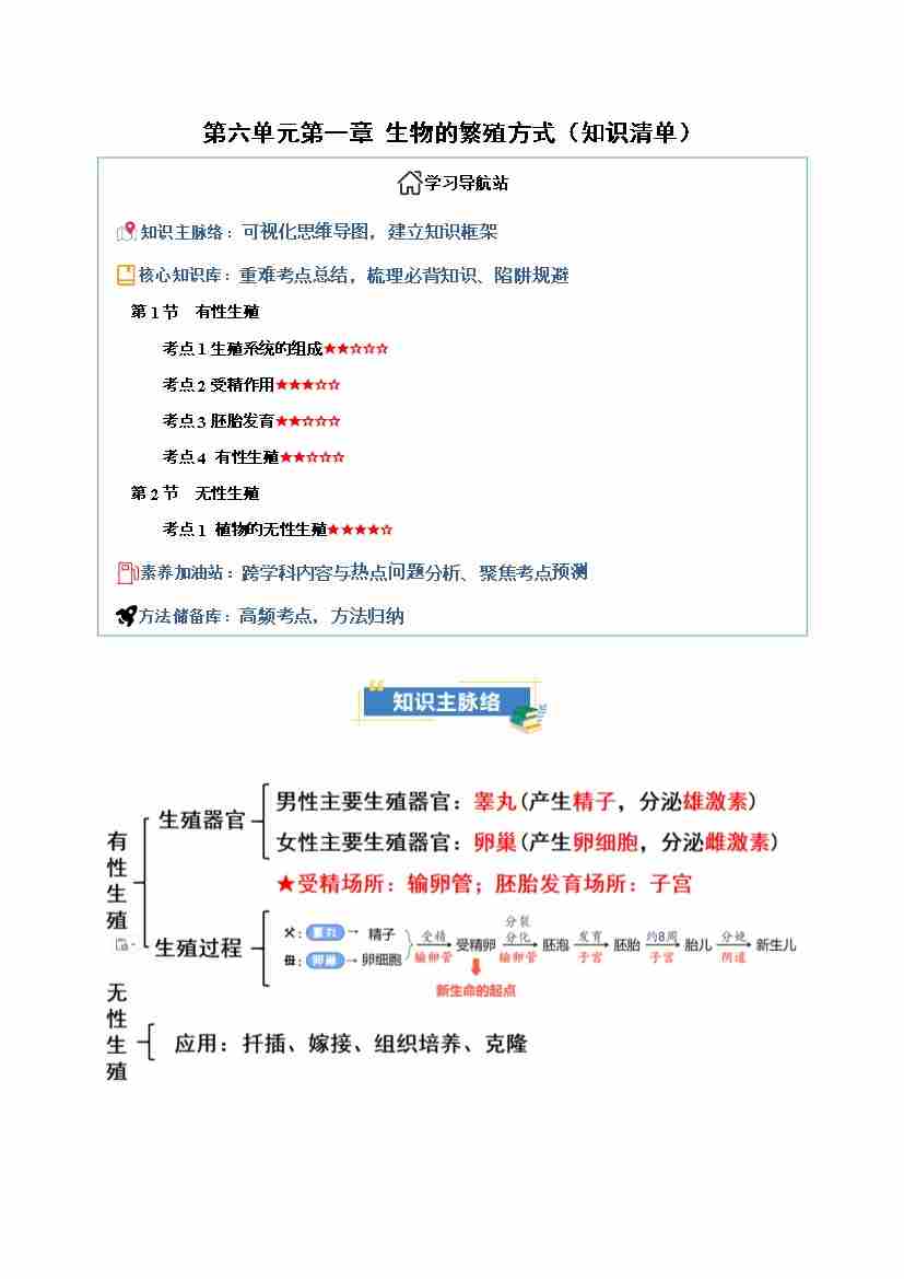 第六单元第一章 生物的繁殖方式(知识清单)(解析版)