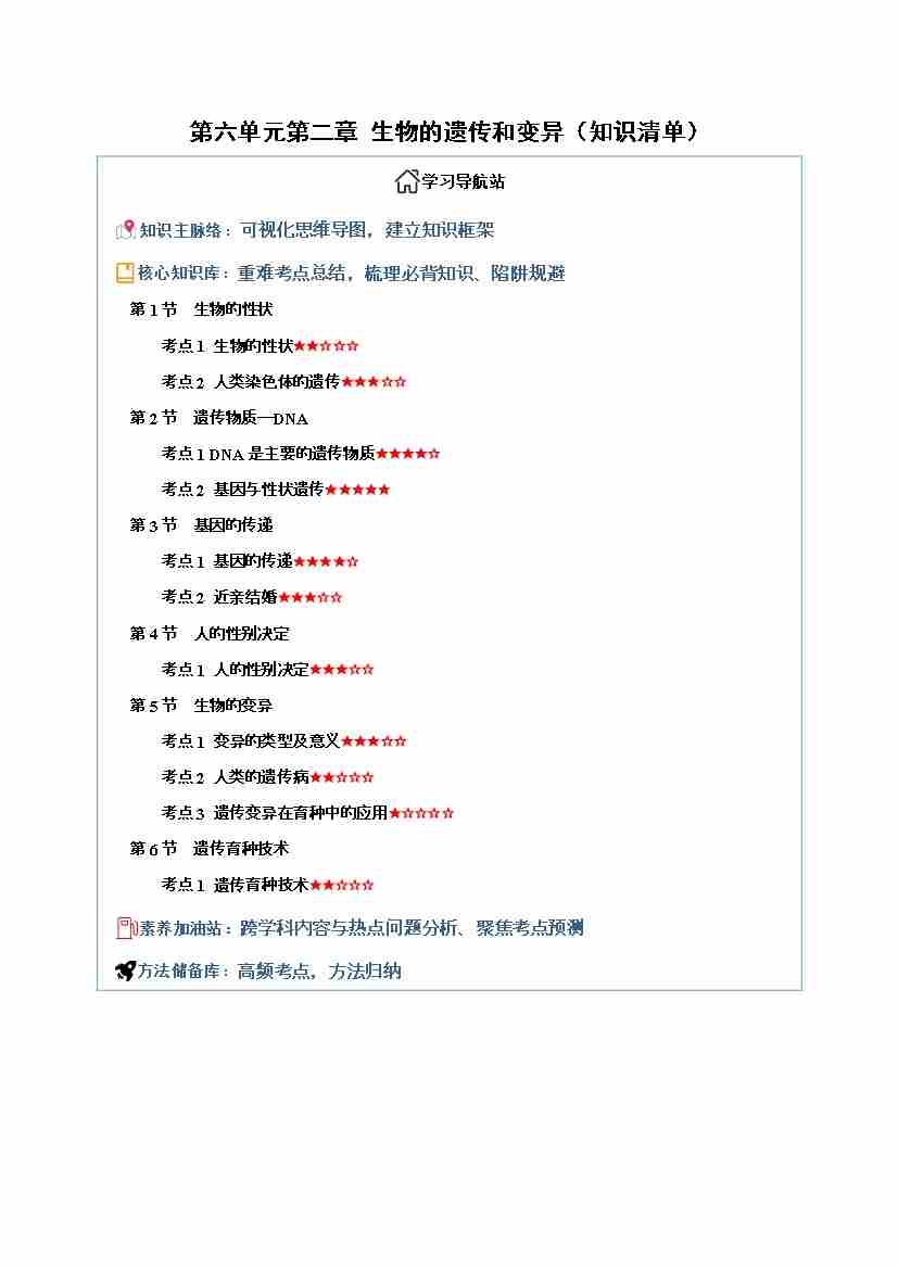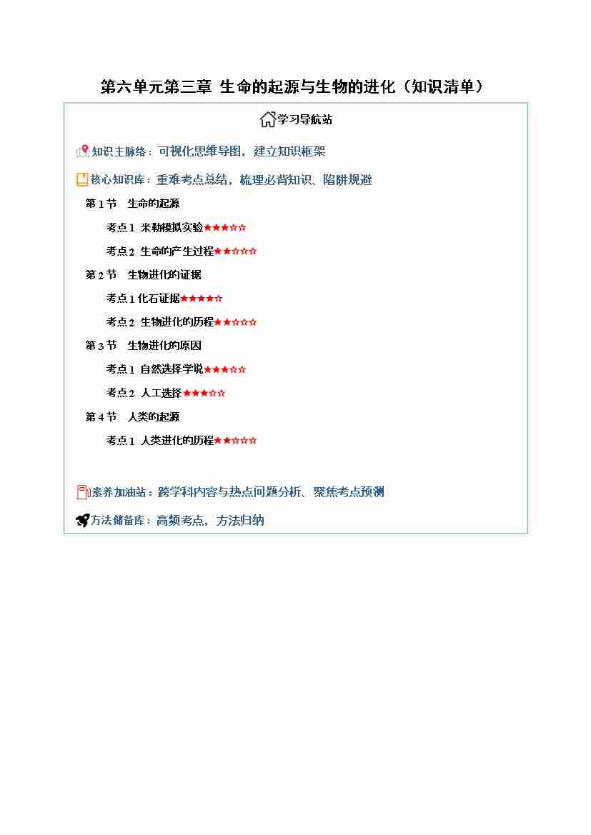 第六单元第三章 生命的起源与生物的进化(知识清单)(解析版)