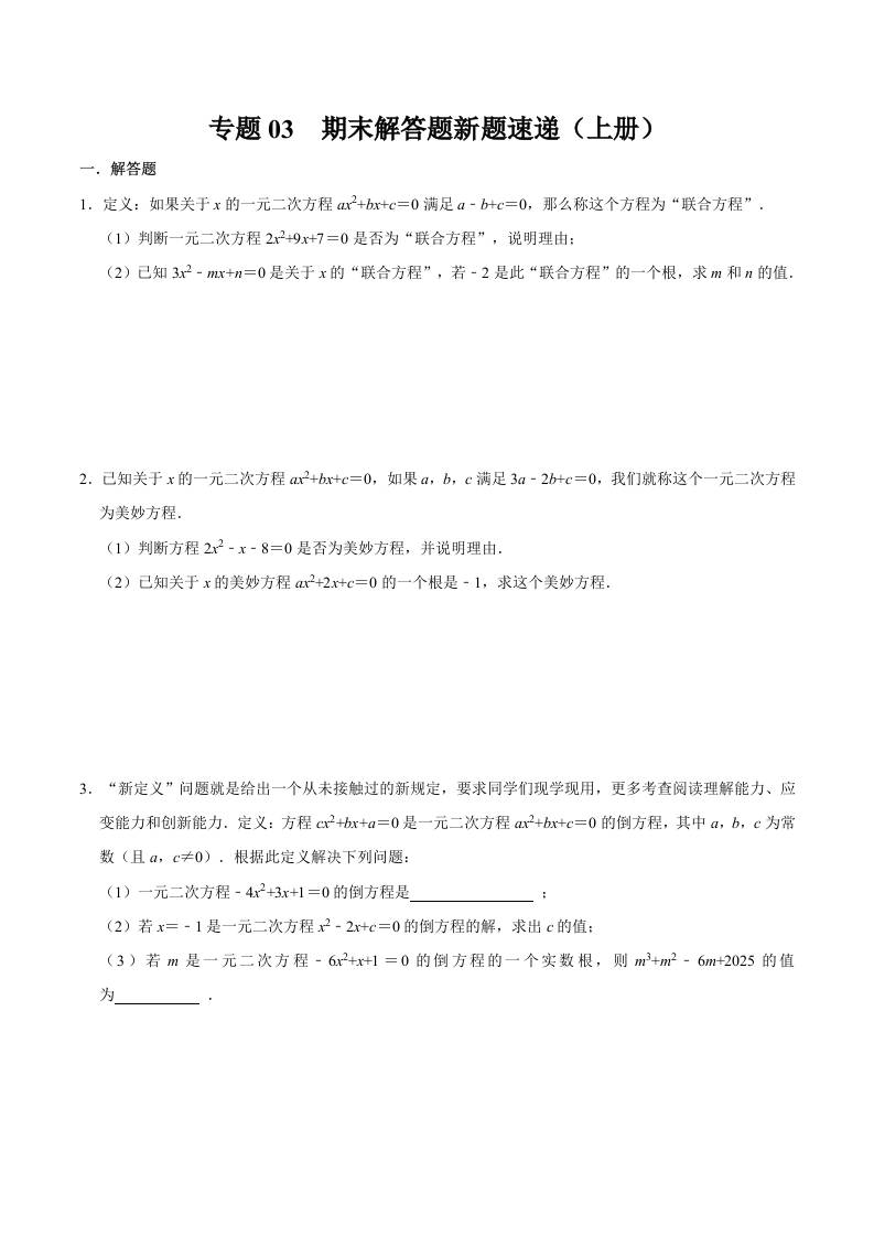 专题03 期末解答题新题速递(上册考点)(高效培优期末专项训练)(原卷版)