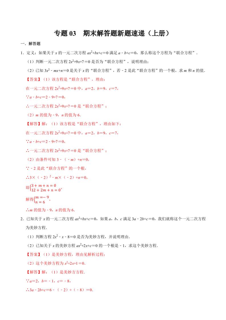 专题03 期末解答题新题速递(上册考点)(高效培优期末专项训练)(解析版)