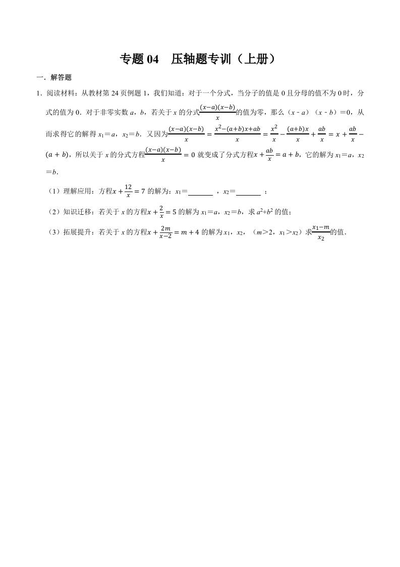 专题04 压轴题专训(上册考点)(高效培优期末专项训练)(原卷版)