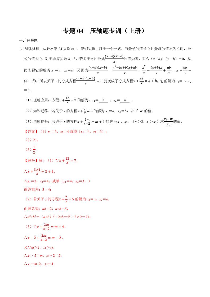专题04 压轴题专训(上册考点)(高效培优期末专项训练)(解析版)