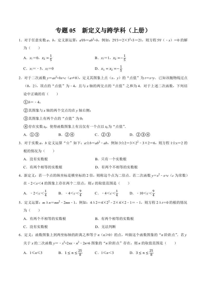 专题05 新定义与跨学科专训(上册考点)(高效培优期末专项训练)(原卷版)