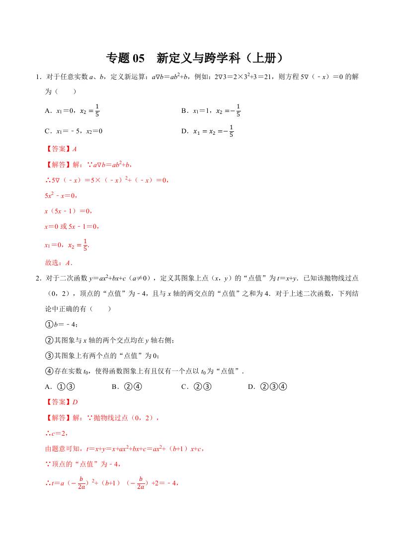 专题05 新定义与跨学科专训(上册考点)(高效培优期末专项训练)(解析版)